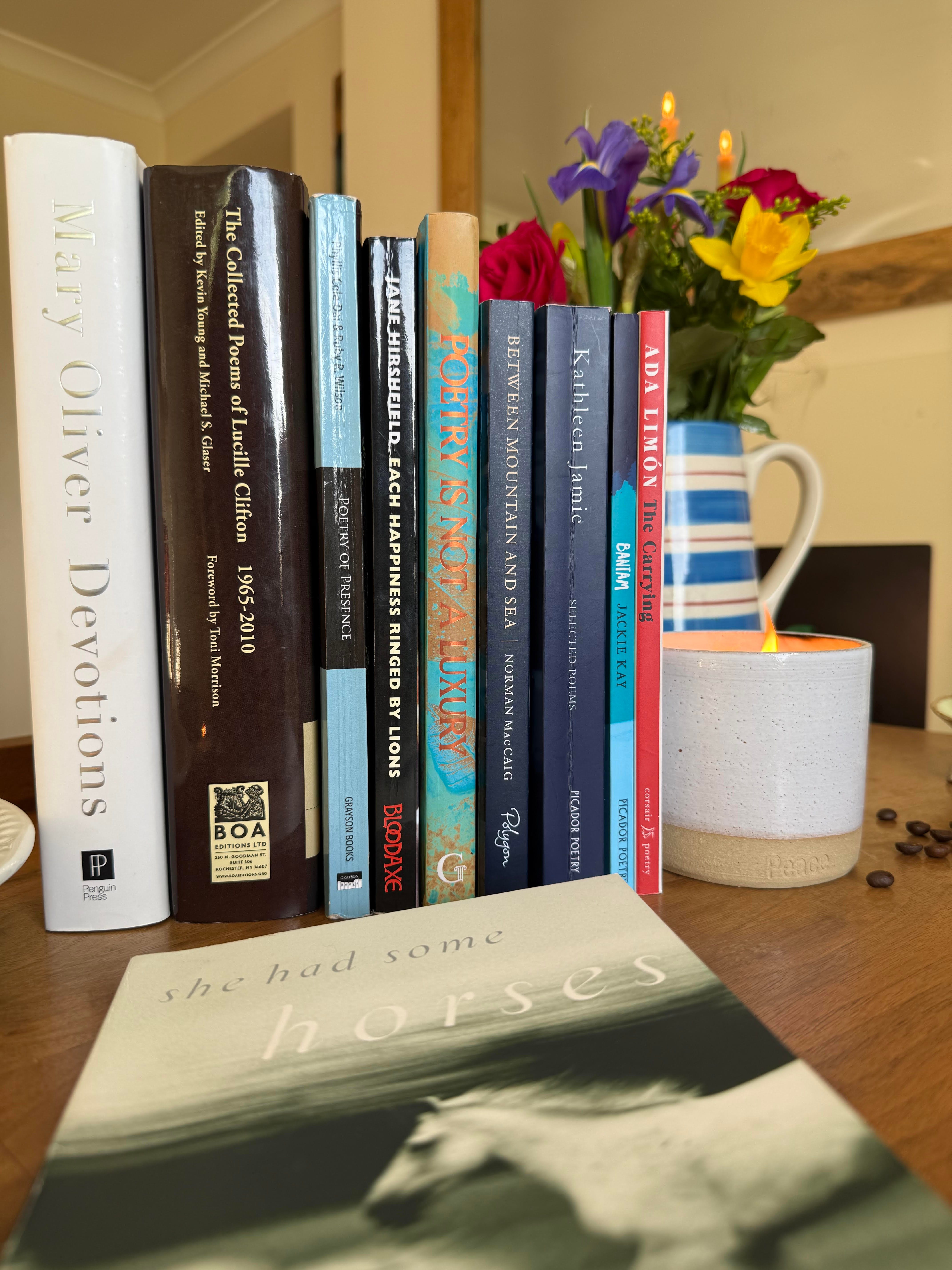We choose a handful of drafts and begin the tender work of brushing out tangles and braiding the glossy mane. We move poems from notebook to digital space. We tinker at line level and read aloud. We cut what’s dull. We keep what sparkles.